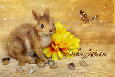 Keywords: hare easter bunny dekohase dekoblume flower yellow blossom bloom stones butterfly deco decorative decoration painting digital painting spring easter