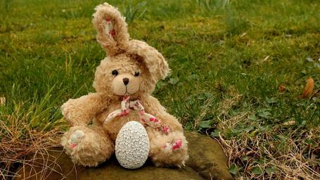 Keywords: hare soft toy fabric stuffed animal teddy bear cute cuddly easter easter egg grass green nature soft fur easter bunny festival celebration holidays