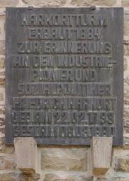 Keywords: Harkortturm 002.JPG Harkortturm in Wetter an der Ruhr own Janericloebe 2010-07 other fields 1 inscription inscription HARKORTTURM<br/> ERBAUT 1884<br/> ZUR ERINNERUNG<br/> AN DEN INDUSTRIE-<br/> PIONIER UND<br/> SOZIALPOLITIKER<br/>FRIEDRICH HARKORT<br/>GEB AM 22 02 1793<br/>GEST AM 06 03 1880 de Plaques in Wetter Ruhr Harkortturm