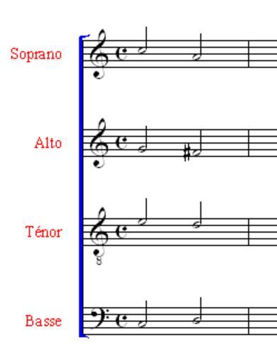 Keywords: Harmonie1.PNG fr Exemple d'harmonie à quatre voix own Gilles Louïse 2008-05 musical notation Sheet music examples