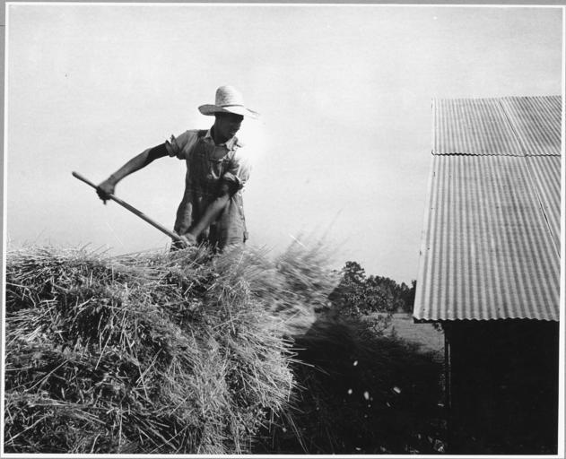 | Keywords: Harmony Community, Putnam County, Georgia.... The owner of Harmony's best farm brings in his oat hay . . . - NARA - 521336.jpg Scope and content Full caption reads as follows Harmony Community Putnam County Georgia The owner of Harmony's best farm brings in his oat hay by tractor The machine he is using a rubber-tipped Farmall is the type most commonly seen in the county This feed will cut down considerably on the amount of grain the operator will have to buy when pasture begins to go poor General notes 521336 Local identifier 83-G-41023 Department of Agriculture Bureau of Agricultural Economics Division of Economic Information ca 1922 - ca 1953 NARA-Author Rusinow Irving Photographer 5307166 <br /> Still Picture Records Section Special Media Archives Services Division NWCS-S National Archives at College Park 8601 Adelphi Road College Park MD 20740-6001 1941 05 28 - 1941 06 01 Record group Record Group 83 Records of the Bureau of Agricultural Economics 1876 - 1959 Record group ARC 412 Photographic Prints Documenting Programs and Activities of the Bureau of Agricultural Economics and Predecessor Agencies compiled ca 1922 - ca 1947 documenting the period ca 1911 - ca 1947 Series ARC 521048 File unit File unit ARC Variant control numbers NAIL Control Number NWDNS-83-G-41023 Other versions <gallery> File Harmony_Community _Putnam_County _Georgia _The_owner_of_Harmony's_best_farm_brings_in_his_oat_hay_ _ _ _-_NARA_-_521336 tif tif File Harmony_Community _Putnam_County _Georgia _The_owner_of_Harmony's_best_farm_brings_in_his_oat_hay_ _ _ _-_NARA_-_521336 jpg jpg </gallery> NARA-cooperation PD-USGov Irving Rusinow Putnam County Georgia Black and white photographs of Georgia U S state Straw |