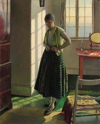 | Keywords: Harold Harvey Gertrude in an Interior 1929.jpg Gertrude in an Interior Signed and dated Harold Harvey 29 Oil on canvas 76 2 x 61 cm Christie's online 1365945 1929 Creator Harold Harvey PD-old-auto 1941 Harold Harvey 1929 paintings People in rooms in art Temporary for Cat-a-lot - Female humans Self care Standing Kerchiefs in art Domestic interiors in art Dressing tables Paintings of women standing indoors | ||||