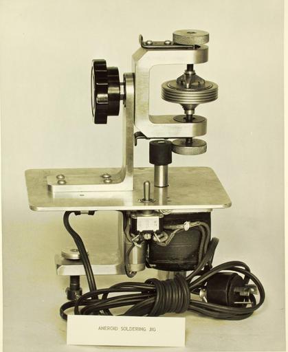 | Keywords: indoor monochrome Catalog #: Kantner_0502 Title: Harold Kantner Special Collection Photo [Photo] Description: Aneroid soldering jig Repository: San Diego Air and Space Museum Archive Catalog #: Kantner_0502 Title: Harold Kantner Special Collection Photo [Photo] Description: Aneroid soldering jig Repository: San Diego Air and Space Museum Archive |