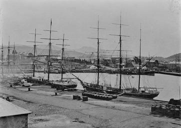 | Keywords: Harriet McGreggor and Wagoola al Wharf - SLV H91.108-2644.jpg original caption Harriet McGreggor on the right and Wagoola on the left In the back ground the steamer Victoria http //handle slv vic gov au/10381/30722 State Library of Victoria - Allan C Green collection of glass negatives SLVIC-digitalimage 30722 H91 108/264 Creator Allan C Green http //digital slv vic gov au/webclient/MetadataManager pid 175264 descriptive_only true This work is out of copyright <br>State Library of Victoria request acknowledgement of the work's creator and the source of the work PD-Australia Photographs by Allan Green Harriet McGregor ship 1870 Wagoola ship 1856 Victoria ship 1872 Black and white photographs Ships in Tasmania Port of Hobart |
