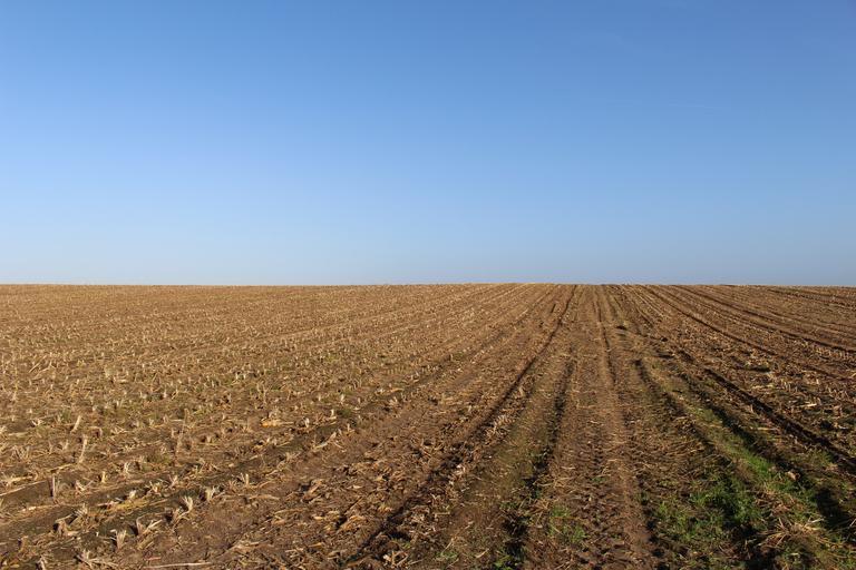 Keywords: harvest autumn corn field arable nature horizon blue sky sky blue sun