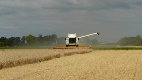 Keywords: harvest grain combine arable farming harvest time agricultural vehicles field grain wheat