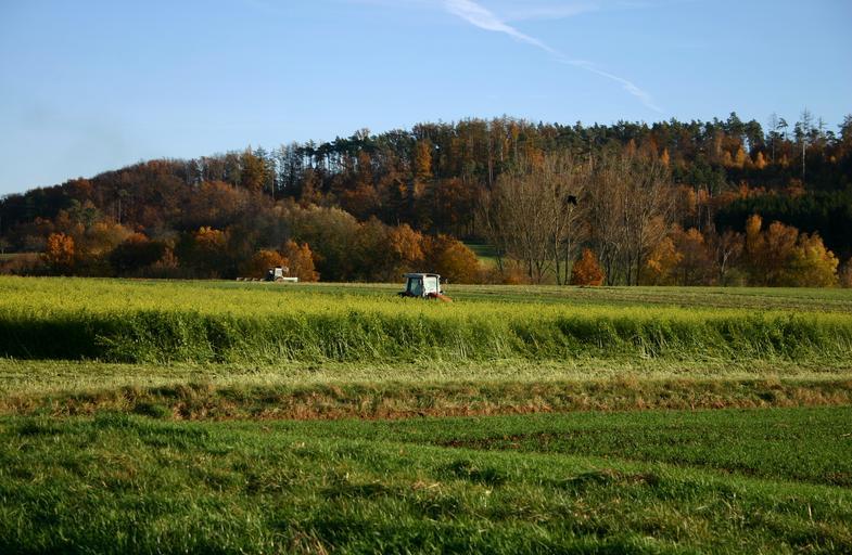 Keywords: harvest tractor agriculture field autumn colorful arable forest bauer rural southern germany baden württemberg nature landscape plant