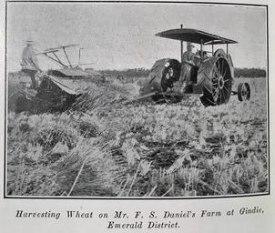 | Keywords: gindie emerald queensland australia harvest wheat machinery crop f s daniel fsdaniel farm harvester cru årgang jahrgang vendimia outdoor photo border blackandwhite black and white Harvesting wheat on F.S. Daniel's farm at Gindie, Emerald district, Qld - circa 1915 Explore Aussie~mobs' 9124 photos on Flickr! |