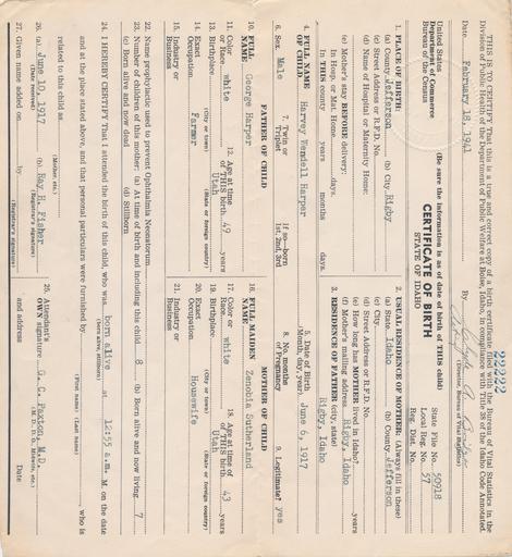 Keywords: Harvey Sr.'s birth certificate brendaharper