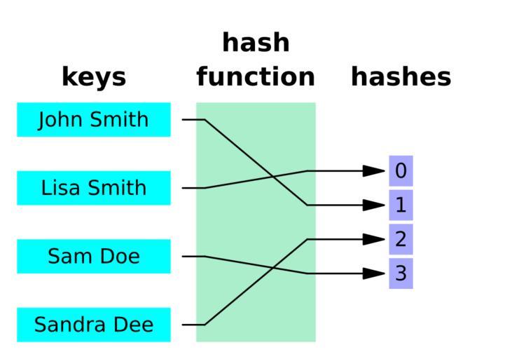 | Keywords: Hash table 4 1 0 0 0 0 0 LL.svg en Minimal perfect hash functionn with four names being mapped to the integers 0 3 without collisions Created with User Jorge Stolfi/make-hash-table-figure v 2009-04-12 with parameters -nkeys 4 -back 0 -funcbox 1 -sparse 0 -keys 0 -values 0 -collisions 0 -links 0 -overflow LL Own Jorge Stolfi 2009-04-12 Hash tables |