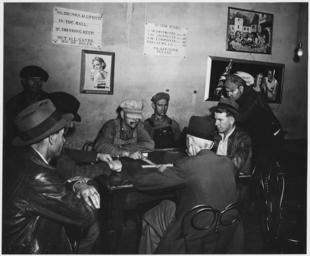 | Keywords: Haskell County, Kansas. Sublette's Pool Hall. Recreation is limited in this region, though now that . . . - NARA - 522154.tif Scope and content Full caption reads as follows Haskell County Kansas Sublette's Pool Hall Recreation is limited in this region though now that most families have cars many of them drive to the larger towns outside the county to see movies In Sublette people meet either here or in the back part of one of the drugstores There is a domino game going in both almost every night The pool hall draws more people because it offers a choice of dominoes or pool; also most of the drug-store crowd are younger people General notes 522154 Local identifier 83-G-41965 Department of Agriculture Bureau of Agricultural Economics Division of Economic Information ca 1922 - ca 1953 NARA-Author Rusinow Irving Photographer 5307166 <br /> Still Picture Records Section Special Media Archives Services Division NWCS-S National Archives at College Park 8601 Adelphi Road College Park MD 20740-6001 04/1941 Record group Record Group 83 Records of the Bureau of Agricultural Economics 1876 - 1959 Record group ARC 412 Photographic Prints Documenting Programs and Activities of the Bureau of Agricultural Economics and Predecessor Agencies compiled ca 1922 - ca 1947 documenting the period ca 1911 - ca 1947 Series ARC 521048 File unit File unit ARC Variant control numbers NAIL Control Number NWDNS-83-G-41965 yes Other versions <gallery> File Haskell_County _Kansas _Sublette's_Pool_Hall _Recreation_is_limited_in_this_region _though_now_that_ _ _ _-_NARA_-_522154 tif tif File Haskell_County _Kansas _Sublette's_Pool_Hall _Recreation_is_limited_in_this_region _though_now_that_ _ _ _-_NARA_-_522154 jpg jpg </gallery> NARA-cooperation PD-USGov Irving Rusinow Haskell County Kansas NARA TIF images with categorized JPGs |