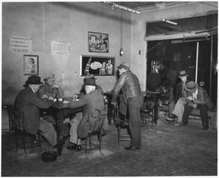 | Keywords: Haskell County, Kansas. Sublette's Pool Hall. Recreation is limited in this region, though now that . . . - NARA - 522155.tif Scope and content Full caption reads as follows Haskell County Kansas Sublette's Pool Hall Recreation is limited in this region though now that most families have cars many of them drive to the larger towns outside the county to see movies In Sublette people meet either here or in the back part of one of the drugstores There is a domino game going in both almost every night The pool hall draws more people because it offers a choice of dominoes or pool; also most of the drug-store crowd are younger people Beer is sold here but most of the people are more inclined to stick to soft drinks Liquor is illegal in the state but Sublette has its bootlegger as do most other towns in Kansas General notes 522155 Local identifier 83-G-41966 Department of Agriculture Bureau of Agricultural Economics Division of Economic Information ca 1922 - ca 1953 NARA-Author Rusinow Irving Photographer 5307166 <br /> Still Picture Records Section Special Media Archives Services Division NWCS-S National Archives at College Park 8601 Adelphi Road College Park MD 20740-6001 04/1941 Record group Record Group 83 Records of the Bureau of Agricultural Economics 1876 - 1959 Record group ARC 412 Photographic Prints Documenting Programs and Activities of the Bureau of Agricultural Economics and Predecessor Agencies compiled ca 1922 - ca 1947 documenting the period ca 1911 - ca 1947 Series ARC 521048 File unit File unit ARC Variant control numbers NAIL Control Number NWDNS-83-G-41966 yes Other versions <gallery> File Haskell_County _Kansas _Sublette's_Pool_Hall _Recreation_is_limited_in_this_region _though_now_that_ _ _ _-_NARA_-_522155 tif tif File Haskell_County _Kansas _Sublette's_Pool_Hall _Recreation_is_limited_in_this_region _though_now_that_ _ _ _-_NARA_-_522155 jpg jpg </gallery> NARA-cooperation PD-USGov Irving Rusinow Haskell County Kansas NARA TIF images with categorized JPGs |