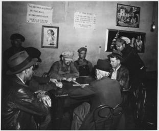 | Keywords: Haskell County, Kansas. Sublette's Pool Hall. Recreation is limited in this region, though now that . . . - NARA - 522154.jpg Scope and content Full caption reads as follows Haskell County Kansas Sublette's Pool Hall Recreation is limited in this region though now that most families have cars many of them drive to the larger towns outside the county to see movies In Sublette people meet either here or in the back part of one of the drugstores There is a domino game going in both almost every night The pool hall draws more people because it offers a choice of dominoes or pool; also most of the drug-store crowd are younger people General notes 522154 Local identifier 83-G-41965 Department of Agriculture Bureau of Agricultural Economics Division of Economic Information ca 1922 - ca 1953 NARA-Author Rusinow Irving Photographer 5307166 <br /> Still Picture Records Section Special Media Archives Services Division NWCS-S National Archives at College Park 8601 Adelphi Road College Park MD 20740-6001 04/1941 Record group Record Group 83 Records of the Bureau of Agricultural Economics 1876 - 1959 Record group ARC 412 Photographic Prints Documenting Programs and Activities of the Bureau of Agricultural Economics and Predecessor Agencies compiled ca 1922 - ca 1947 documenting the period ca 1911 - ca 1947 Series ARC 521048 File unit File unit ARC Variant control numbers NAIL Control Number NWDNS-83-G-41965 Other versions <gallery> File Haskell_County _Kansas _Sublette's_Pool_Hall _Recreation_is_limited_in_this_region _though_now_that_ _ _ _-_NARA_-_522154 tif tif File Haskell_County _Kansas _Sublette's_Pool_Hall _Recreation_is_limited_in_this_region _though_now_that_ _ _ _-_NARA_-_522154 jpg jpg </gallery> NARA-cooperation PD-USGov Irving Rusinow Haskell County Kansas |