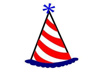 Keywords: hat cone party clown stripes spiral red white blue star celebration