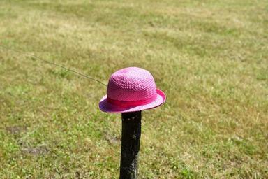 Keywords: hat meadow wood pile pink leave lonely