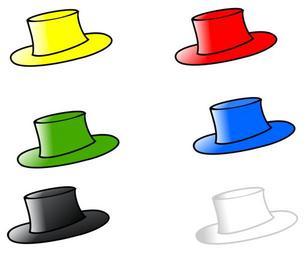 Keywords: hat six hats head wear fashion red black blue yellow green white
