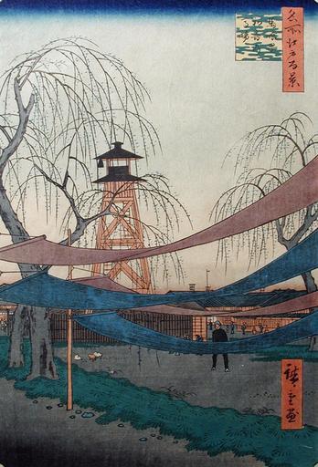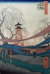 | Keywords: Hatsune Riding Grounds, Bakurocho (5765354023).jpg en <b>Accession Number </b> 1954 42 b <b>Display Artist </b> Utagawa Hiroshige <b>Display Title </b> Hatsune Riding Grounds Bakurocho <b>Translation s </b> Bakurocho hatsune no baba <b>Series Title </b> One Hundred Famous Views of Edo <b>Suite Name </b> Meisho Edo hyakkei <b>Creation Date </b> 1857 <b>Medium </b> Woodblock <b>Height </b> 13 1/4 in <b>Width </b> 8 5/8 in <b>Display Dimensions </b> 13 1/4 in x 8 5/8 in 33 66 cm x 21 91 cm <b>Publisher </b> Sakanaya Eikichi <b>Credit Line </b> Gift of Mrs Clark Cavenee <b>Label Copy </b> One Hundred Famous Views of EdoOne Hundred Famous Views of Edo is one of the last series Hiroshige made before his death in 1858 after a long-term illness These 115 prints together present his unique meditation on locations in Edo Hiroshige distances the viewer from the people he portrays who go about their daily lives unaware of being observed and inattentive to the fleeting nature of life The images reveal the warmth and nostalgia of a successful artist at the end of his career for the culture and people of his home city and the locales that they enjoyed and made famous through their appreciation of simple and natural beauty In downtown Edo freshly dyed bolts of cloth dry in elegant swathes across the foreground of an open space that had before been a field where the shogun would exercise his horses A fire watchtower with alarm bell rises high over the residential buildings as a constant reminder of the ever-present threat of fire in the city The impression of this particular print is crisp and clean and its condition permits a certain delicacy and grace to prevail throughout the scene For instance the graceful branches of the willow trees include tiny specks of green suggesting early spring a detail that is only seen in early editions of this print such as this <b>Label Copy Spanish </b> Cien vistas famosas de EdoCien vistas famosas de Edo es una de las ltimas series que hizo Hiroshige antes de su muerte en 1858 despus de una larga enfermedad Estos 115 grabados presentan su singular cavilacin sobre estos sitios en Edo Hiroshige separa al espectador de las personas representadas en los grabados ocupadas en sus vidas diarias sin estar concientes de que son observadas y de la fugacidad de la vida Las imgenes revelan la calidez y la nostalgia que sinti un artista exitoso al final de su carrera por la cultura y la gente de su ciudad y las localidades que estas personas disfrutaron e hicieron famosas a travs de su apreciacin por la belleza sencilla y natural En el centro de Edo los rollos de tela recin teida se secan en franjas elegantes en el primer plano de un espacio abierto que haba sido un campo donde un shogun trabajaba a sus caballos Una torre de vigilancia de incendios con una campana de alarma se yergue sobre los edificios residenciales como un recordatorio constante de la persistente amenaza de incendios en la ciudad La impresin de este grabado es ntida y limpia y su condicin permite que cierta delicadeza y gracia predomine a lo largo de la escena Por ejemplo las ramas grciles de los sauces incluyen pequeas manchas de verde que sugieren el comienzo de la primavera un detalle que slo se ve en ediciones tempranas de este grabado <b>Collection </b> http //www sdmart org/art/our-collection/asian-art The San Diego Museum of Art 2011-05-27 11 45 16 https //www flickr com/photos/thesandiegomuseumofartcollection/5765354023/ Flickr en thesandiegomuseumofartcollection PD-old-100 Art of Japan in the San Diego Museum of Art |
