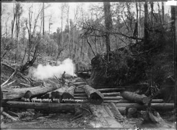 | Keywords: blackandwhite monochrome outdoor black and white Hauling logs in "Punga Bush" (Ponga Bush ?), Manunui, photographed circa 1920s by William Archer Price. Looks across logs towards a timber worker and a steam hauler. Inscriptions: Inscribed - Photographer's title on negative -bottom left: Log Hauler Punga Bush. Manunui 2703 D. Quantity: 1 b&w original negative(s). Physical Description: Dry plate glass negative Hauling logs in the bush, Manunui. Price, William Archer, 1866-1948 :Collection of post card negatives. Ref: 1/2-001298-G. Alexander Turnbull Library, Wellington, New Zealand. natlib.govt.nz/records/22538559 Hauling logs in "Punga Bush" (Ponga Bush ?), Manunui, photographed circa 1920s by William Archer Price. Looks across logs towards a timber worker and a steam hauler. Inscriptions: Inscribed - Photographer's title on negative -bottom left: Log Hauler Punga Bush. Manunui 2703 D. Quantity: 1 b&w original negative(s). Physical Description: Dry plate glass negative Hauling logs in the bush, Manunui. Price, William Archer, 1866-1948 :Collection of post card negatives. Ref: 1/2-001298-G. Alexander Turnbull Library, Wellington, New Zealand. natlib.govt.nz/records/22538559 |