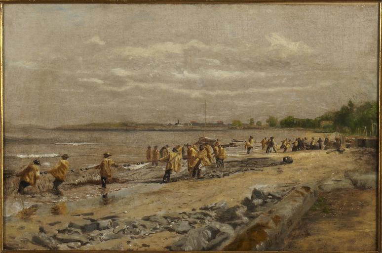 Keywords: Hauling the Seine.jpg Thomas Eakins American 1844 “1916 Hauling the Seine 1882 Oil on canvas 31 5 x 46 8 cm 12 3/8 x 18 7/16 in frame 59 8 × 75 5 × 14 cm 23 9/16 × 29 3/4 × 5 1/2 in Gift of the Forbes Collection Steve Forbes Class of 1970 Christopher Forbes Class of 1972 on the occasion of his 30th reunion 2002-229 Princeton University Art Museum 1882 Creator Thomas Eakins PD-old-auto 1916 DEFAULTSORT 1882 Eakins Thomas Hauling the Seine Paintings by Thomas Eakins Beach seines American art in the Princeton University Art Museum Paintings by Thomas Eakins at Princeton University Art Museum American paintings in the Princeton University Art Museum 1882 Modern art in the Princeton University Art Museum Paintings in the Princeton University Art Museum