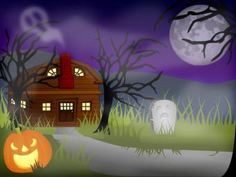 Keywords: haunted house landscape spooky halloween creepy fog foggy haunted horror night scary scene spirit full moon pumpkin
