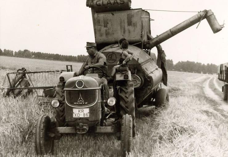 Keywords: Haus Traar 1969 Mähdrescher.jpg de Haus Traar “ Deutz D40 vor Claas Super Mähdrescher im Hintergrund das Löken heute durchkreuzt von der Autobahn A57 own Mgweb 1969 Haus Traar Deutz D Claas Super Tractors in Germany 1969 in agriculture