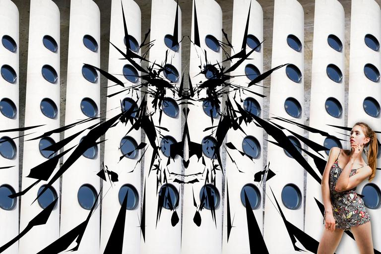 Keywords: hauswand collage face model female fantasy woman mystical art mysterious window