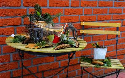 Keywords: hauswand table chair covered ornament seat garden furniture wood silent cutlery idyllic eye catcher