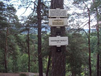 Keywords: Havranky 6.JPG cs Nahoře je označení skal own Zákupák 2013-06-28 Havraní skály Hiking and footpath fingerposts in Česká Lípa District