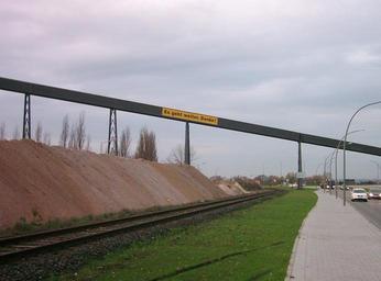 Keywords: HAW weiter01.jpg Transportband des Hamburger Aluminium-Werks HAW über die Finkenwerder Straße in Hamburg-Finkenwerder Spruchband anläßlich des Verkaufs der HAW an die Trimet AG und geplanter Wiederinbetriebnahme Neuer Name des Unternehmens seit 2007 Trimet Aluminium AG Hamburg Band-conveyor Hamburger Aluminium-Werk HAW in Hamburg Germany own Own photo 2006-11 GeorgHH Own work all rights released Public domain Banners