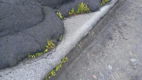 Keywords: hawaii island of hawaii lava volcano lava flow cold petrified road closed plant in lava