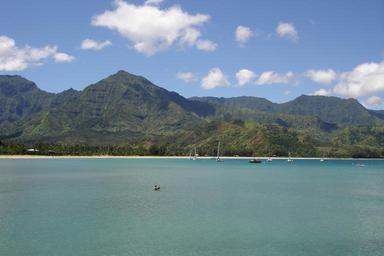 Keywords: hawaii landscape turquoise water ocean mountains scenic paradise nature vacation tropical bay kauai hanalei