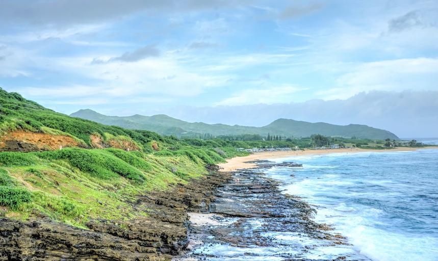 Keywords: hawaii oahu north shore nature ocean pacific hawaii beach travel vacation outdoor summer water tourism sea blue sky tropical outside clouds landscape rocks cliffs waves