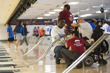| Keywords: Hawaii Special Olympics 141122-N-QG393-030.jpg en Spc Jamaal Jacobs assigned to 3-25th Echo Company Aviation Battalion at Wheeler Army Airfield assists an athlete during a game of bowling as a part of the Special Olympics held on Joint Base Pearl Harbor-Hickam The Special Olympics LLC is a nonprofit group established in 1968 to provide year-round sports training and athletic competition in a variety of Olympic-type sports for children and adults with intellectual disabilities giving them continuing opportunities to develop physical fitness demonstrate courage experience joy and participate in a sharing of gifts skills and friendship with their families other Special Olympics athletes and the community U S Navy photo by Mass Communication Specialist 2nd Class Tiarra Fulgham/Released 2014-11-22 Petty Officer 2nd Class Tiarra Fulgham https //www dvidshub net/image/1717143 141122-N-QG393-030 2015-01-09 12 02 PEARL HARBOR HI US PD-USGov-Military-Navy 2014 in Pearl Harbor Sports at Pearl Harbor Special Olympics Images from DoD uploaded by Fæ |