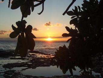 Keywords: hawaii sunset beach water tree brench silhouette