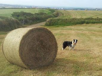 Keywords: hay bale sheepdog collie dog