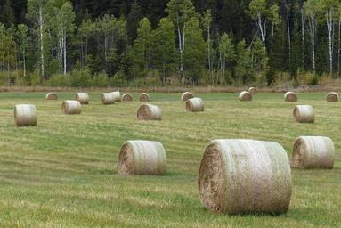 Keywords: hay balls field grass landscape countryside outside scene farm farmland meadow natural meal nature plant