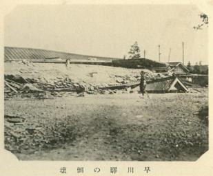Keywords: Hayakawa Station Great Kanto earthquake of 1923.jpg ja 関 大 災で 壊した早 駅 1923 内務 社会 編 大正 災志写 帖 大正15年 1926年 P62 author PD-Japan-oldphoto Hayakawa Station 1923 Great Kantō earthquake