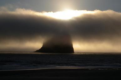Keywords: haystack rock pacific coast oregon sunset mist solitude