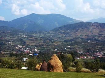 Keywords: haystacks landscape mountains cloud blue sky romania sun vegetation woe travel