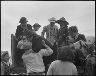 | Keywords: Hayward, California. This family of Japanese ancestry have just arrived in town from their farm. T . . . - NARA - 537512.jpg Scope and content The full caption for this photograph reads Hayward California This family of Japanese ancestry have just arrived in town from their farm They will await the evacuation bus which will take them to the Tanforan Assembly center where they will be transferred later to War Relocation Authority centers for the duration General notes 537512 Local identifier 210-G-C162 Department of the Interior War Relocation Authority 02/16/1944 - 06/30/1946 NARA-Author Lange Dorothea 1895-1965 Photographer 1372774 <br /> Still Picture Records Section Special Media Archives Services Division NWCS-S National Archives at College Park 8601 Adelphi Road College Park MD 20740-6001 1942-05-08 Record group Record Group 210 Records of the War Relocation Authority 1941 - 1989 Record group ARC 537 Central Photographic File of the War Relocation Authority compiled 1942 - 1945 Series ARC 536000 File unit File unit ARC Variant control numbers NAIL Control Number NWDNS-210-G-C162 Other versions <gallery> File Hayward _California _This_family_of_Japanese_ancestry_have_just_arrived_in_town_from_their_farm _T_ _ _ _-_NARA_-_537512 tif tif File Hayward _California _This_family_of_Japanese_ancestry_have_just_arrived_in_town_from_their_farm _T_ _ _ _-_NARA_-_537512 jpg jpg </gallery> NARA-cooperation PD-USGov Dorothea Lange Japanese American internment processing in Hayward 1942 in California People of the United States in 1942 Farmers from the United States Families of the United States Men wearing hats Boys wearing hats Flatbed trucks |