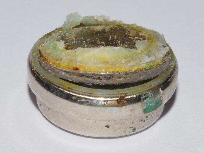| Keywords: HD 625 button cell (leaked decomposing).jpg en Leaking HD 625 button cell battery Apparently a mercury-based cell and no longer made This was the light meter battery in my Zenit TTL until I unpacked it today- it looked like it might have forced the battery cover off Could be around 30 years old- I don't recall ever replacing the battery from the time I bought the camera secondhand in the mid-80s until I stopped using it in the late-90s 2015-03-07 19 28 40 own Multicherry other versions HD 625 button cell jpg 150 cc-zero Uploaded with UploadWizard Images by User Multicherry Leaked electric batteries Button_cells |