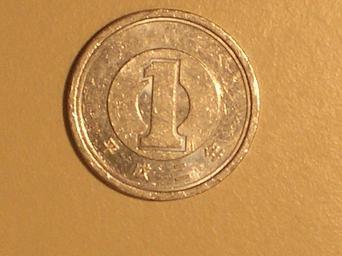 Keywords: Head of 1 yen coin.JPG 2006-03-06 own assumed Yappakoredesho 1 yen coins
