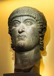 | Keywords: Head Constantine Colosseo Rome.jpg Head of Emperor Constantine I part of a colossal statue Bronze Roman artwork 4th century CE Musei Capitolini Rome Réplique visible au Colisée Tête de l'empereur Constantine élément d'une statue colossale Bronze œuvre romaine IVe siècle ap J -C Musei Capitolini Rome Replica on display at the Colosseo Testa dell'imperatore Costantino Bronzo opera tardoromana IV sec d C Musei Capitolini Roma 2013-08-23 for photograph plaster bronze H 1 77 m 5 ft 9 ½ in Museum Musei Capitolini Palazzo dei Conservatori Marcus Aurelius Exedra for the original This one is a replica on display during a temporary exhibition about the Constantine era inside of the Colosseo Aug 2013 object history credit line Original formerly at the Lateran Palace; gift of Sixtus IV 1471 accession number MC 1072 for original Jebulon other versions 41 890665 12 492536 cc-zero Uploaded with UploadWizard Bronze portrait of Constantinus I in the Musei Capitolini Rome Quality images by Jebulon QualityImage |