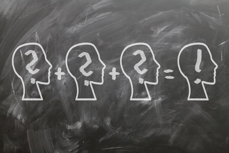 Keywords: head heads exclamation point plus minus question mark development problem solution board school concept slate teaching blackboard chalk learn curriculum writing board equation mathematics know pedagogy education