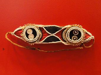 | Keywords: Head or neck band, cuscus teeth, glass beads, shell disks, cloth, Tolai, 1883 - Staatlichen Museums für Völkerkunde München - DSC08315.JPG en Exhibit in the Oceanic collection of the Staatlichen Museums für Völkerkunde München Maximilianstraße 42 Munich Germany Head or neck band made of cuscus teeth glass beads shell disks cloth; Tolai people Gazelle Peninsula East New Britain Province Papua New Guinea 1883 Tolai-Volk Gazelle-Halbinsel von Neubritannien Papua-Neuguinea <br /> Traditionelles Kopf- oder Halsband Cuscus-Zähne Cuscus sind den Possums ähnliche Beutelsäuger Glasperlen Schneckenschalen-Scheiben Stoff 1883; Dauerausstellung Ozeanien des Staatlichen Museums für Völkerkunde München I took this photograph 2011-05-03 03 54 24 Daderot Public domain Tolai Dauerausstellung Ozeanien des Staatlichen Museums für Völkerkunde München |