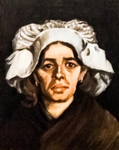 Keywords: Head of a Woman 2 - My Dream.jpg Artwork Creator Vincent van Gogh Parasztasszony fehér főkötővel Kopf einer Bäuerin mit weißer Haube Nuenen 1885 03 Oil on canvas digital reconstruction cm 43 33 5 Institution Van Gogh Museum accession number object history credit line Van Gogh catalogues 130 692 Photo by Szilas at the Van Gogh My Dream Exhibition in Budapest 2013 Commonist PD-old-100 Head of a Peasant woman with white hood by Vincent van Gogh Van Gogh My Dream Exhibition
