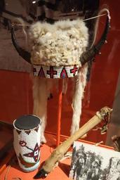 | View Original: | Headdress, Nakoda, early 1900s, moose hide, weasel skin, brass, horsehair, mountain goat horn, rabbit fur, glass beads - Glenbow Museum - DSC00942.JPG (3648x5472) | |||