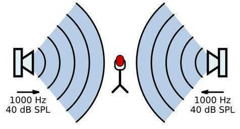 | Keywords: Hearing Science brainteaser - constructive interference.svg en In a silent room there are two stereo speakers facing one another equidistant from a microphone If each speaker is outputting a pure tone at 1000Hz with 40dB SPL amplitude and their periods are such that there is perfect constructive interference at the microphone what frequency and amplitude will the microphone record own Inductiveload 2009-02-15 Otology Interference Sensory Neuroscience Hearing and speech | ||||
