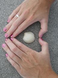 Keywords: heart hands love eternity hand together woman seashell sand sea beach