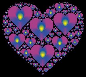 Keywords: heart hearts 3 love shape valentine romance passion fractal colorful prismatic chromatic rainbow shiny metallic art